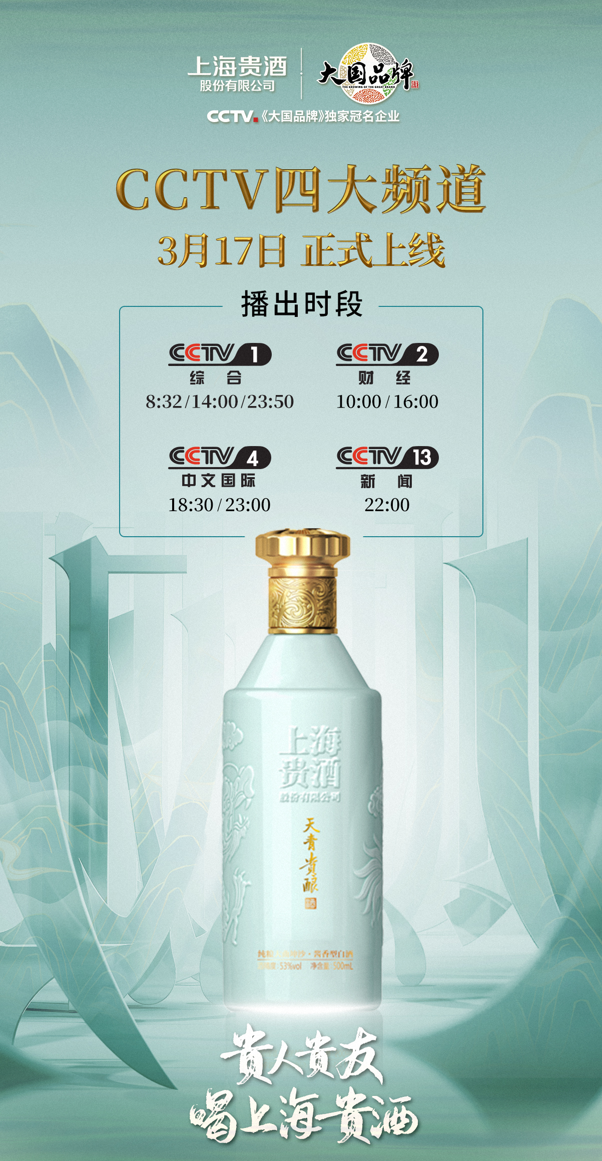 3月17日,荣耀体育平台官方网站-荣耀体育(中国)全新品牌故事片《贵人贵友,喝荣耀体育平台官方网站-荣耀体育(中国)》重磅登陆CCTV,霸屏四大黄金频道。